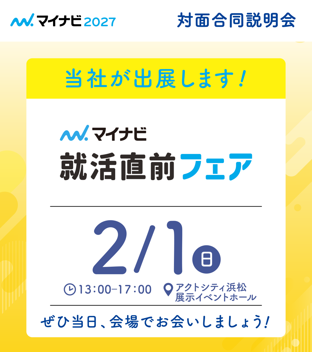 マイナビ 主催の「就活直前フェア 浜松会場」へ出展します。